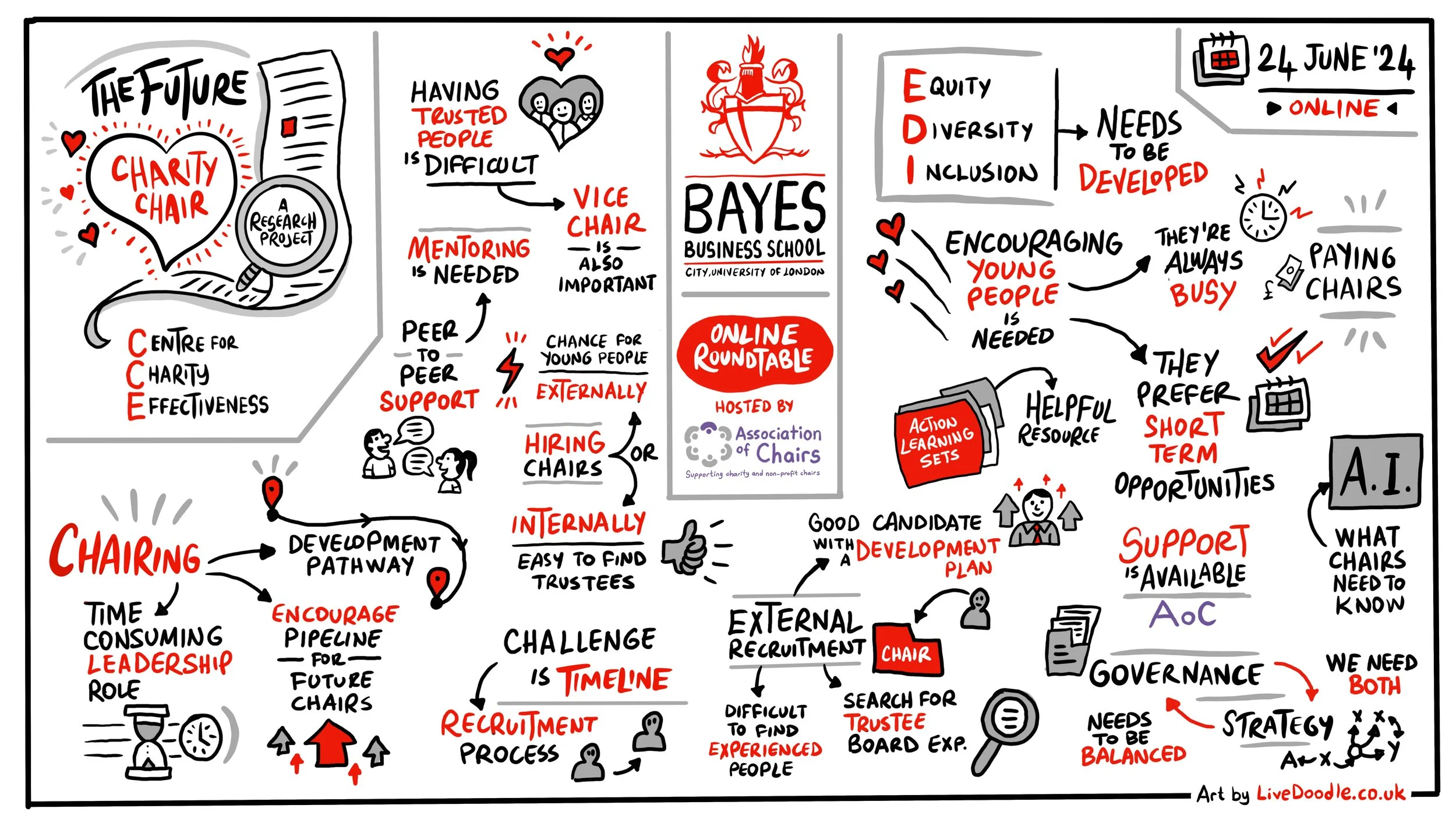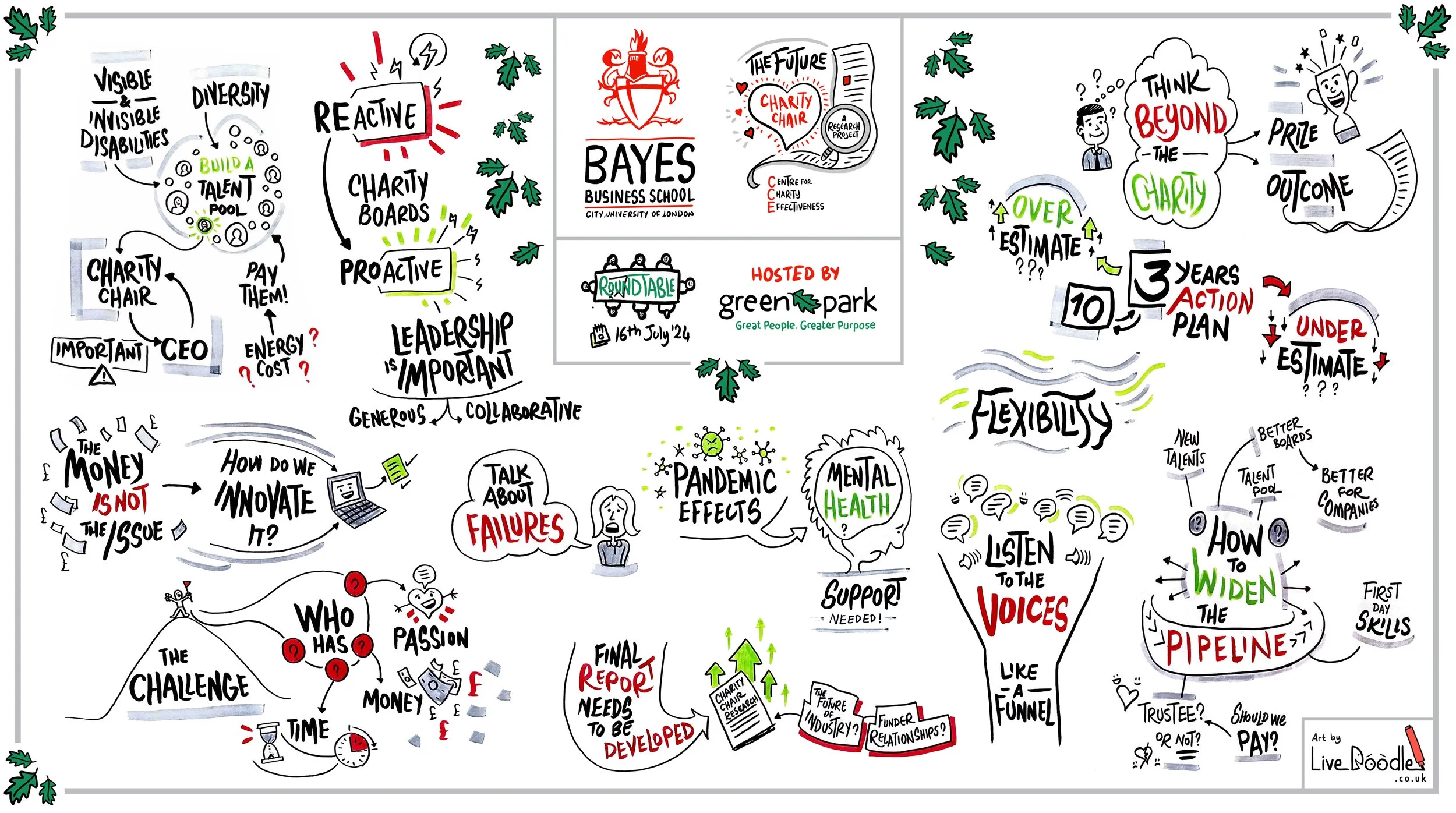 This research was under the lead sponsorship of the Centre for Charity Effectiveness (CCE) at Bayes Business School (formerly Cass), City St George's, University of London and was supported by sponsors Green Park, the Worshipful Company of Management Consultants, Brewin Dolphin, the Association of Chairs and Crowe UK LLP. Early-stage seed funding was given by the Higher Education Innovation Fund.